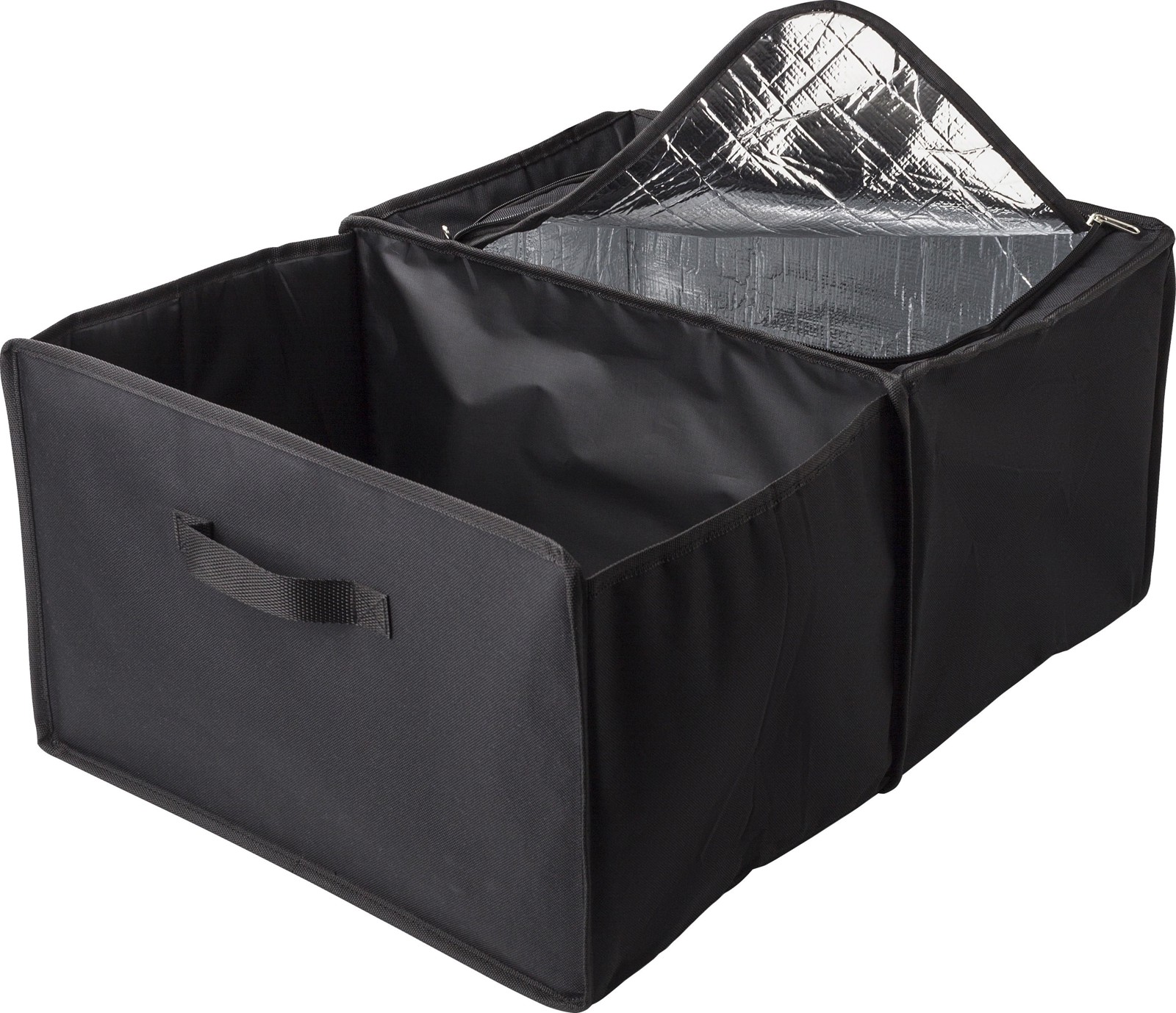 Auton organisaattori tarjoaa tehokasta säilytystilaa ja pitää autosi siistinä ja järjestyksessä. Polyesteri (600D) -materiaalin ansiosta tämä auton tavaratilan järjestäjä on kestävä ja pitkäikäinen. Kahden lokeron avulla voit järjestellä tavarat helposti, ja vetoketjullinen kylmälaukku pitää ruokasi ja juomasi viileinä matkan ajan. Kylmälaukun alumiinifolio-sisäpuoli varmistaa tehokkaan eristyksen. Kokoontaitettava rakenne tekee siitä kätevän säilyttää, kun sitä ei käytetä. Tämä auton järjestäjä on välttämätön kaikille, jotka haluavat pitää autonsa järjestyksessä ja hyödyntää säilytystilan optimaalisesti.