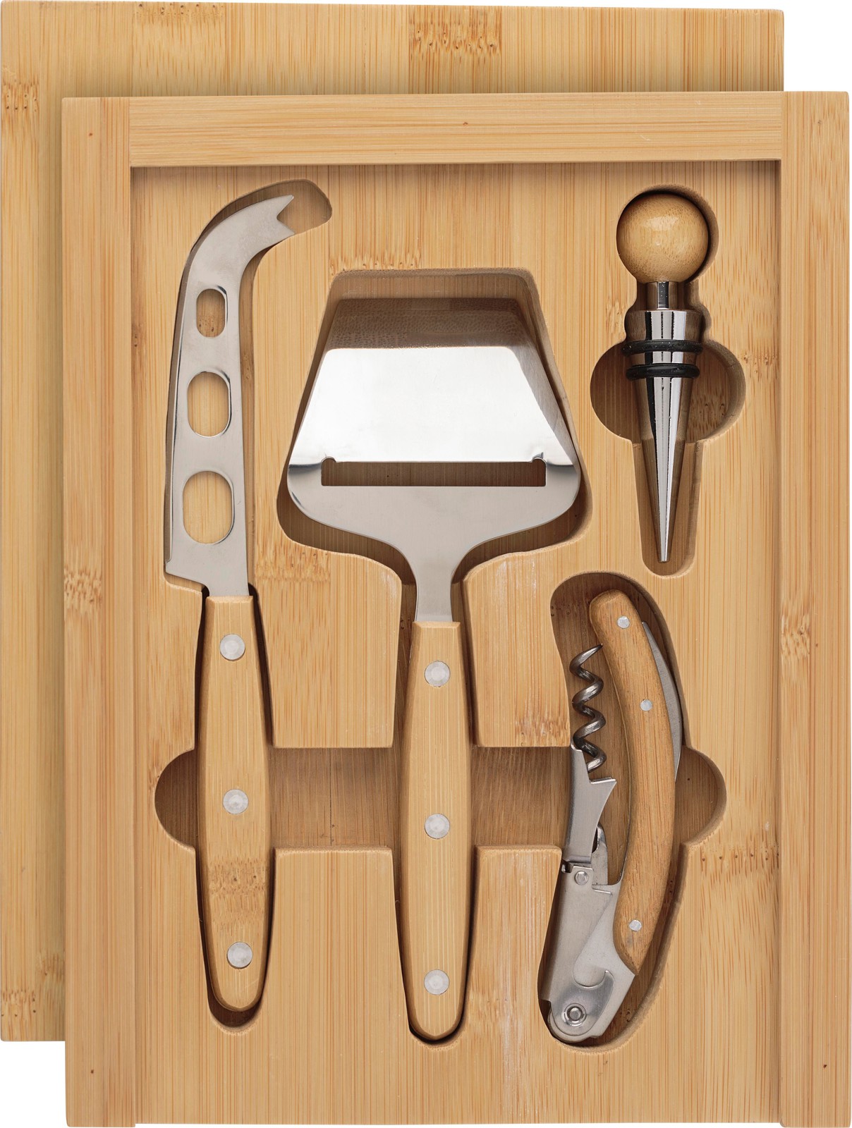Bambusta valmistettu juusto- ja viinisetti Patrick on korkealaatuinen ja kestävä tuote, joka sopii täydellisesti niin arkeen kuin juhlaan. Tämä setti sisältää kaikki tarvittavat välineet, kuten korkkiruuvin, viinitulpan, juustoraastimen ja veitsen, jotka on valmistettu ruostumattomasta teräksestä, bambusta ja sinkkiseoksesta. Bambusta valmistettu juusto- ja viinisetti on sekä tyylikäs että käytännöllinen valinta kaikille, jotka arvostavat hyvää juustoa ja laadukasta viiniä. Tämä setti tarjoaa sekä käyttömukavuutta että esteettistä nautintoa kaikille viini- ja juustohetkille.