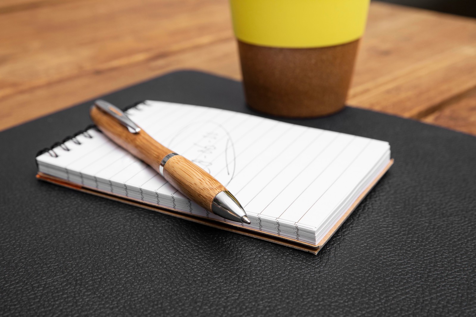 Bambusta valmistettu kuulakärkikynä on täydellinen valinta jokapäiväiseen käyttöön tai tyylikkääksi lahjaksi. Bambu kuulakärkikynä Carson on ympäristöystävällinen vaihtoehto perinteisille muovikynille ja tuo luonnonläheisyyttä työpöydällesi. Käyttämällä bambusta valmistettua kuulakärkikynää, edistät kestävää kehitystä ja pienennät ekologista jalanjälkeäsi. Tämä bambuinen kuulakärkikynä sopii erinomaisesti niin ammattilaisille kuin opiskelijoillekin. Sen musta muste varmistaa selkeän ja tarkan kirjoituksen joka kerta.
