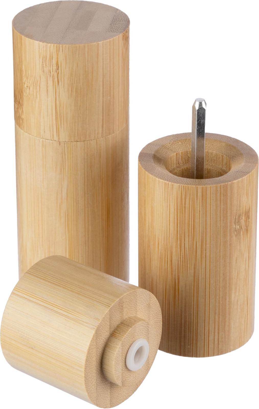Kaunis maustemylly trendikkäästä bambusta. Kiva lahja kotikokille tai grillausmestarille! Pakattu yksittäin paperilaatikkoon.