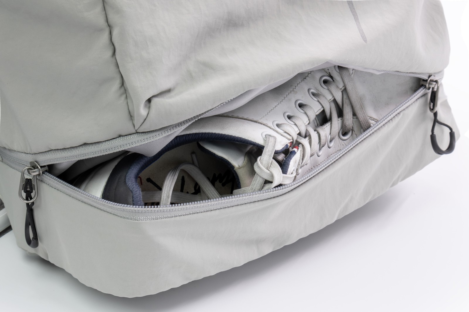 • Taskut: Yksi sivutasku taittoa varten ja kengille tarkoitettu sivutasku