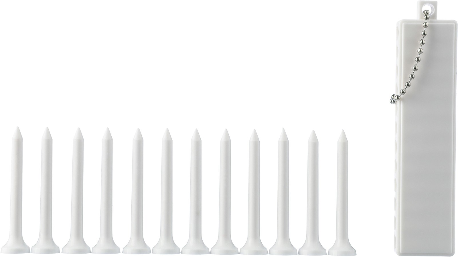 Golf-tiisetti, jossa kuusi puista tiitä, yksi bambuinen griinihaarukka ja kaksi puista merkkausnastaa. Pakattu puuvillaiseen puuvillapussiin.