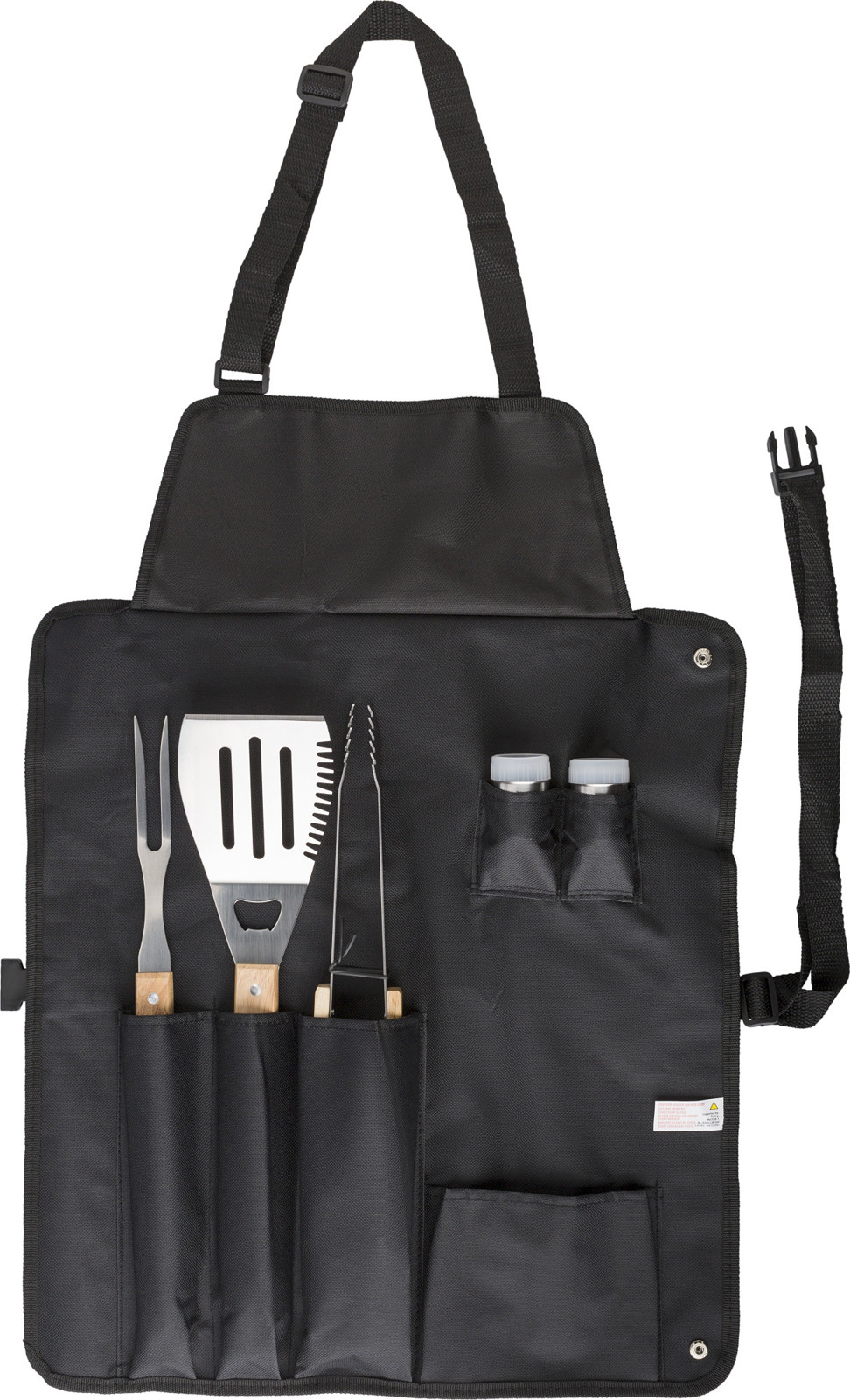 Ruostumattomasta teräksestä valmistettu grillaussetti Hugo on huippulaadukas tuote, joka tekee grillauksesta nautinnon. Tämä viiden osan grillaussetti, joka sisältää leikkuuhaarukan, lastat, pihdit sekä suola- ja pippurisetin, on erinomainen lisä varusteisiisi. Settiin kuuluu myös kestävästä nailonista (600D) valmistettu esiliina, mikä tekee siitä paitsi käytännöllisen myös tyylikkään. Materiaalit, kuten ruostumaton teräs 18/0 ja kovapuu, takaavat pitkäikäisyyden ja kestävyyden. Kun etsit täydellistä grillaussettia, Ruostumattomasta teräksestä valmistettu grillaussetti Hugo on oikea valinta, joka ei petä!