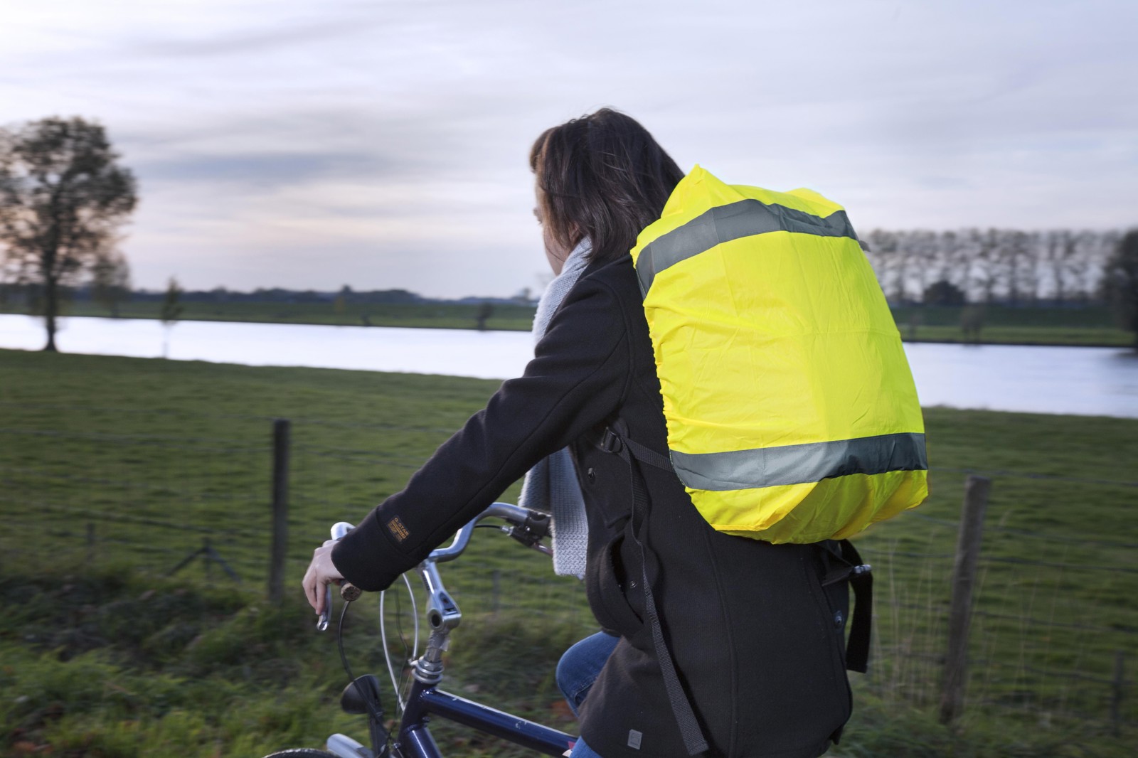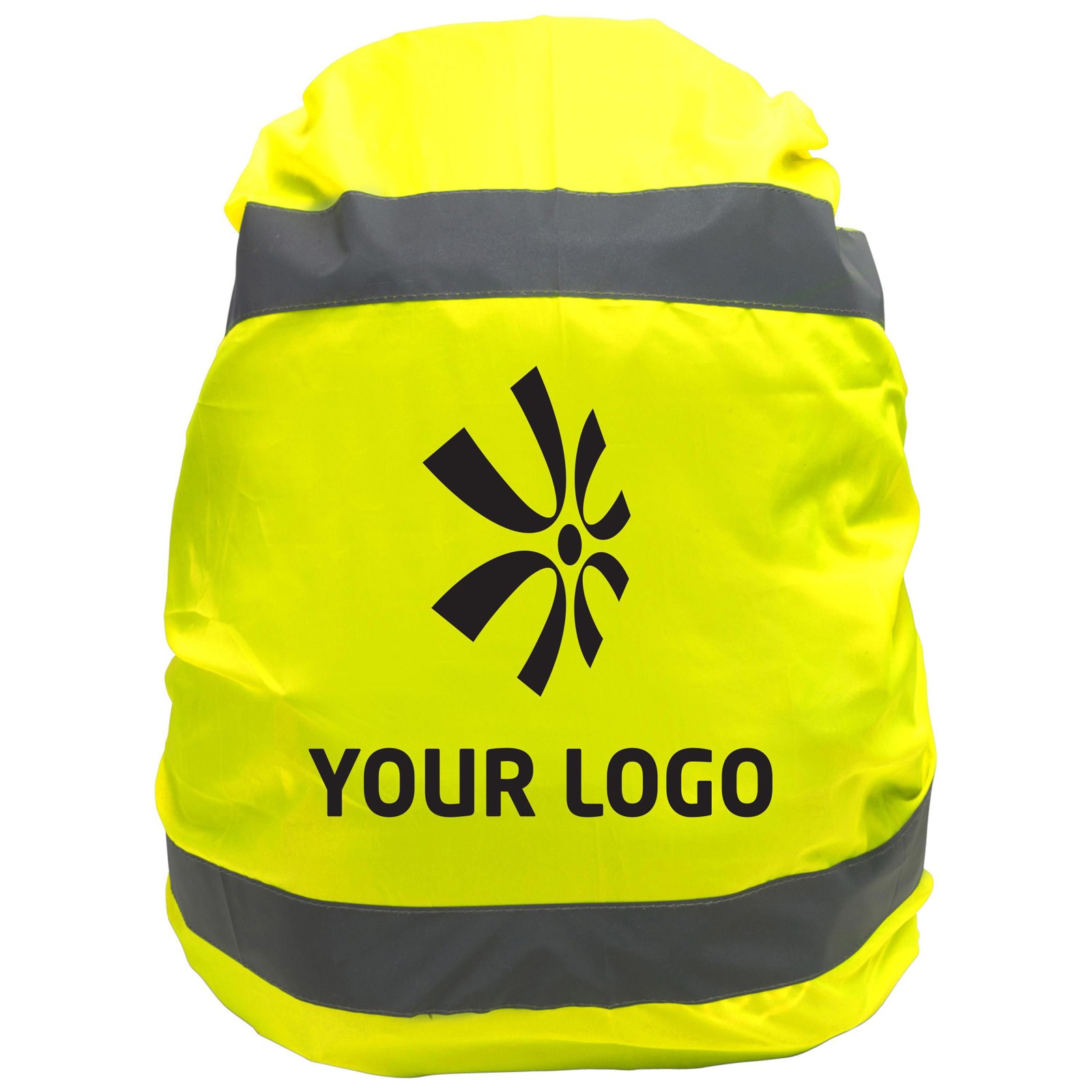 Reppusuoja, jossa kaksi heijastinraitaa. Elastisuuden ansiosta sopii useille eri kokoisille ja muotoisille repuille. 100% polyesteriä, mainoskäyttöön.