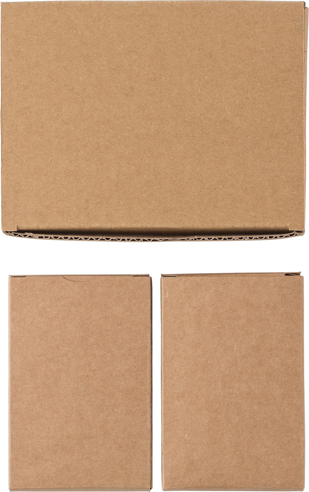 Pahvilaatikko, jossa on pelikortteja Anton on täydellinen valinta kaikille pelikorttien ystäville. Tämä pahvi- ja paperimateriaalista valmistettu laatikko sopii mainiosti korttien säilyttämiseen ja kuljettamiseen. Muovipäällysteiset pelikortit kestävät käytössä pitkään ja ovat helppoja puhdistaa. Pahvilaatikko pelikorteille tuo järjestystä ja suojaa korttisi kulumiselta, pitäen ne aina pelivalmiina. Pahvilaatikko pelikorteille Anton on erinomainen lisä lautapeli- ja korttikokoelmiisi.