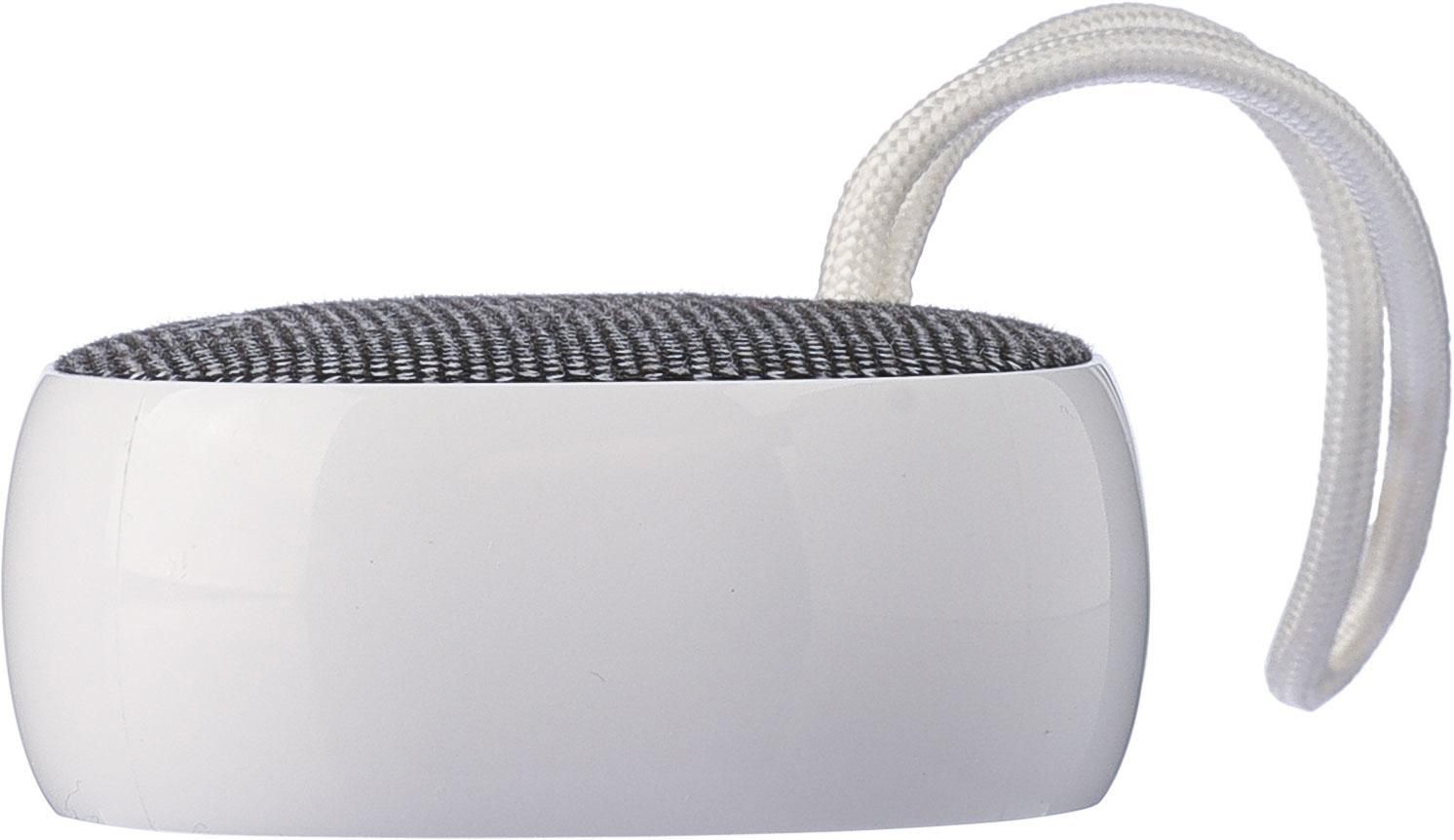 Muovinen (2W) langaton kaiutin Jude musiikin kuunteltuun sekä puheluihin. Kaiutin on vesitiivis, joten se sopii myös kylpyhuonekäyttöön. Voit kiinnittää sen imukupeilla tasaiseen pintaan. Akun kesto noin 2h.