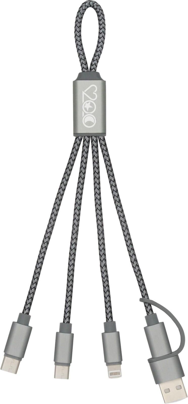 Monitoimikaulanauha, jossa 3-in-1-latauskaapelisetti.