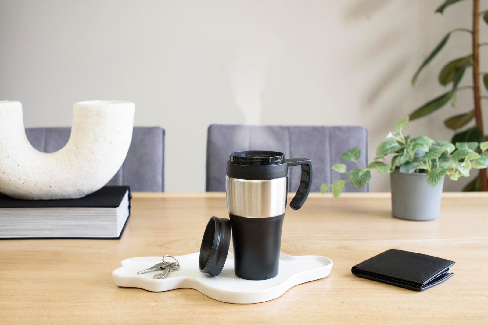 Ruostumattomasta teräksestä ja PP:stä valmistettu matkamuki on täydellinen valinta pitämään juomat halutussa lämpötilassa. Olipa kyseessä kuuma kahvi tai virkistävä kylmä juoma, tämä matkamuki tarjoaa luotettavan ratkaisun. PP ja ruostumattoman teräksen yhdistelmä varmistaa kestävyyden ja helpon puhdistamisen, mikä tekee siitä käytännöllisen valinnan päivittäiseen käyttöön. Kätevä juoma-aukko kannessa, joka sulkeutuu liukuventtiilillä, estää vuotamisen ja tekee siitä helpon käyttää vaikkapa autossa tai kävelyllä. Matkamuki Karina on tyylikäs ja käytännöllinen lisä jokaisen juomakulttuuriin arvostavan henkilön arkeen.