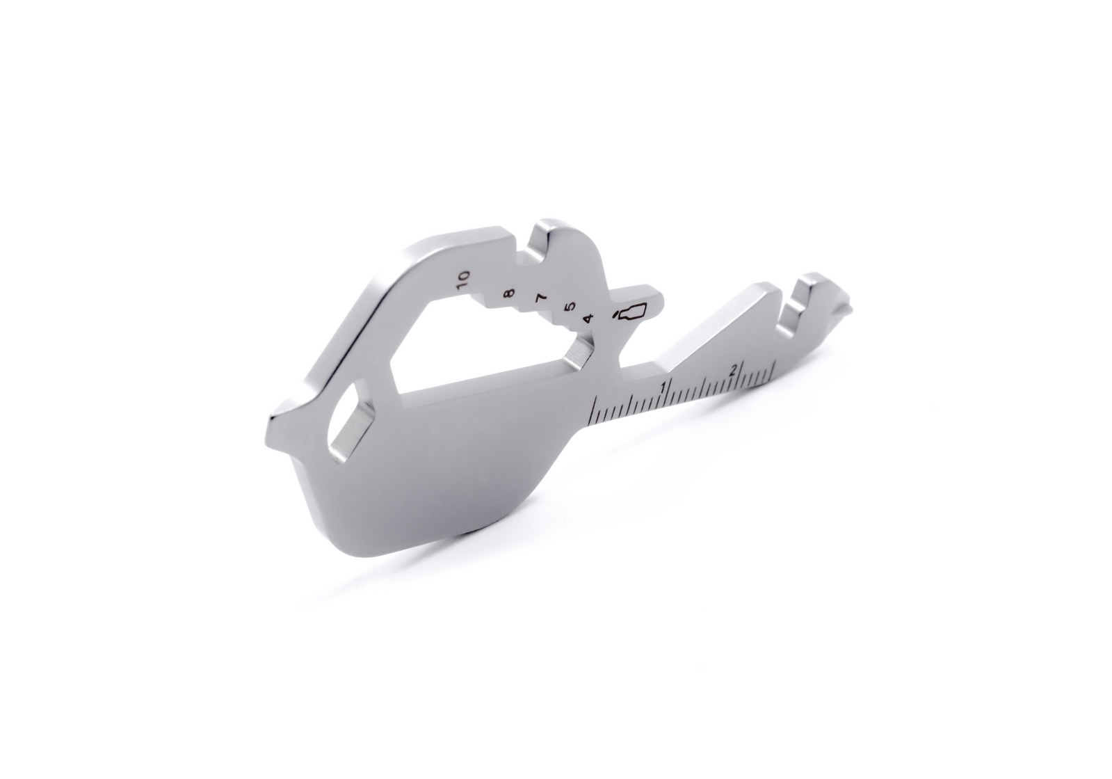 Kee-monitoimityökalu on valmistettu kestävästä 2CR13 martensiittisesta ruostumattomasta teräksestä ja yhdistää 12 tärkeää työkalua kompaktissa avaimen muotoisessa designissa, joka on helppo kiinnittää avaimenperään. Se sisältää erilaisia jakoavaimia, pullonavaajan, ristipää- ja talttaruuvimeisselit, langantaivuttimen sekä senttimetri- ja tuumaviivaimet.