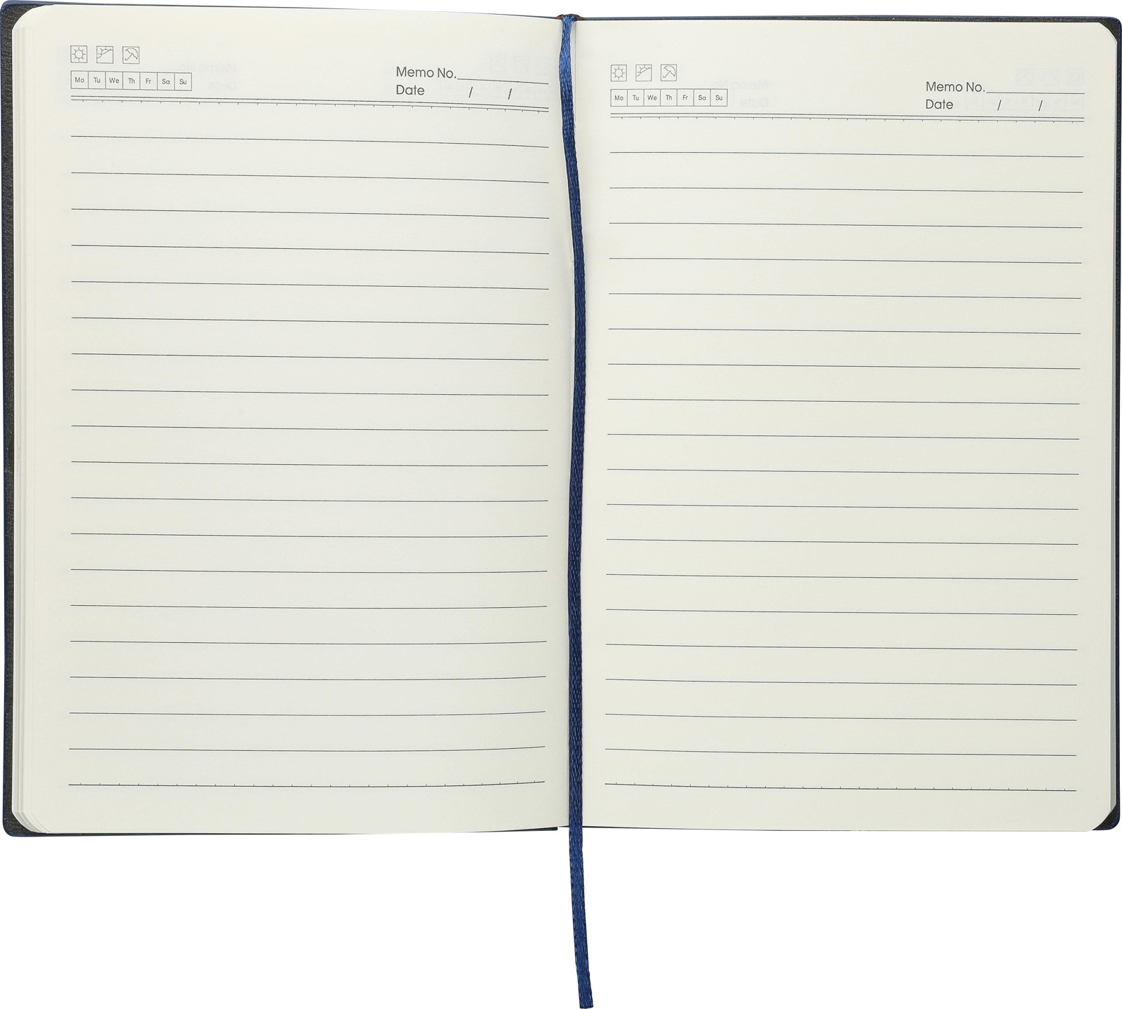 Noin A6-kokoinen muistivihko. Vihkossa on 96 viivoitettua sivua, kuminauha suljenta sekä sivunnäyttäjä. Tämä pahvista, paperista ja PU-materiaalista valmistettu muistikirja kestää hyvin käyttöä ja säilyttää tyylikkään ulkonäkönsä pitkään. Kätevä nauha auttaa löytämään tärkeät muistiinpanosi nopeasti, ja kuminauha kannen päällä varmistaa, että kirja pysyy suljettuna.