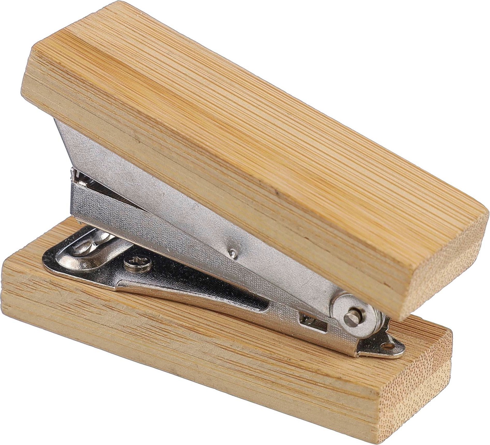 Pieni nitoja (6.7 x 2.1 x 3.7 cm). Bambua. Mukana 50 niittiä.