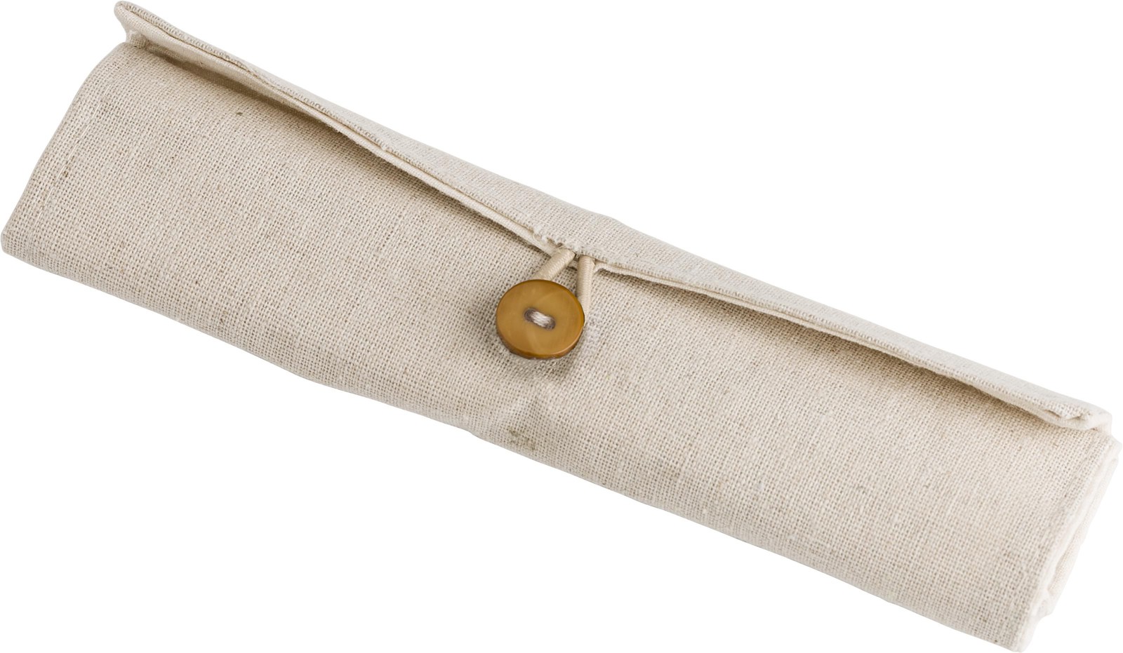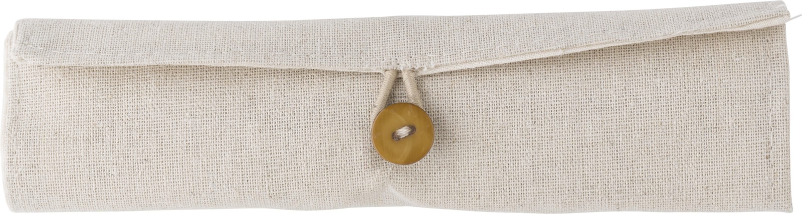 Persoonallinen penaali, joka kääritään kiinni. Puuvillaa/juuttia.