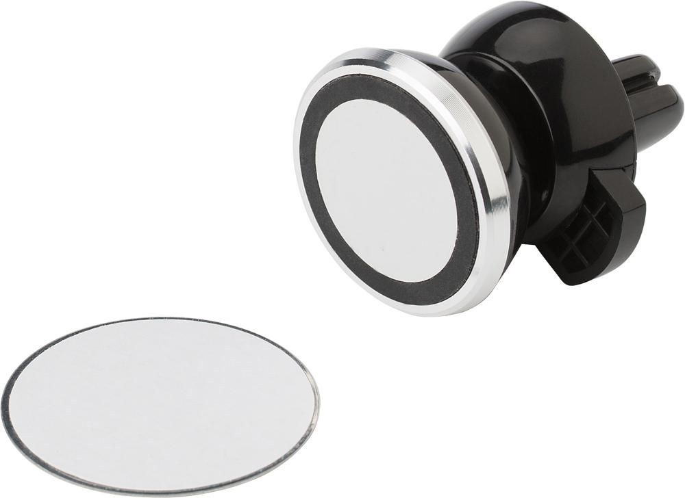 Älypuhelimen pidike autoon. Saadaan kiinnitettyä tuuletusaukkoon. Aseta metallilevy puhelimen takaosaan (liima) ja magneetti pitää sen paikoillaan.