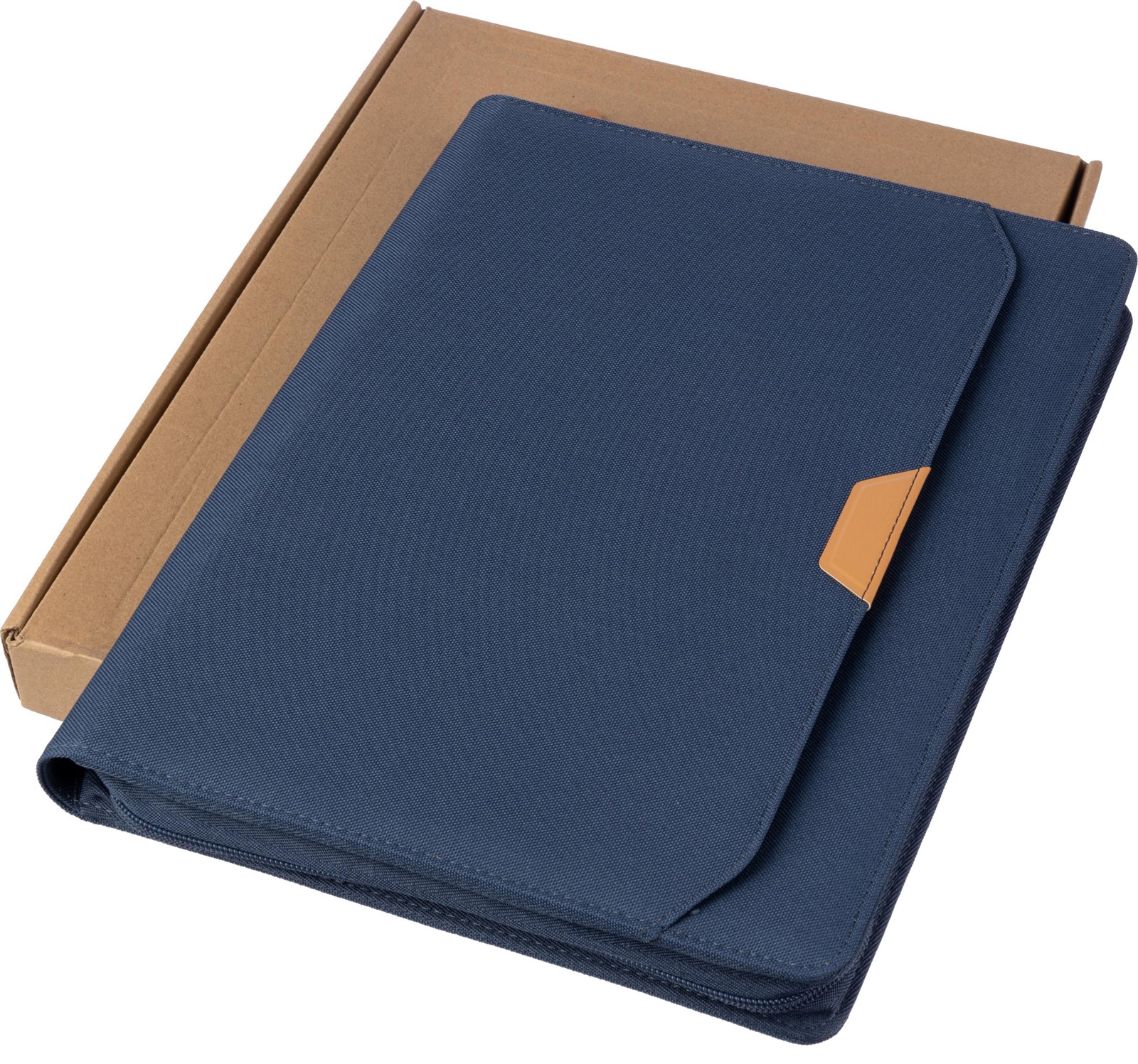 Noin A4-kokoinen asiakirjakansio, jossa keinonahkainen yksityiskohta ja vetoketju. Sisältää 20-ruutuisen muistivihkon (70 g/m²), useita lokeroita ja kynälenkin. Etupuolella pieni tasku. Yksittäin pakattu ruskeaan laatikkoon.