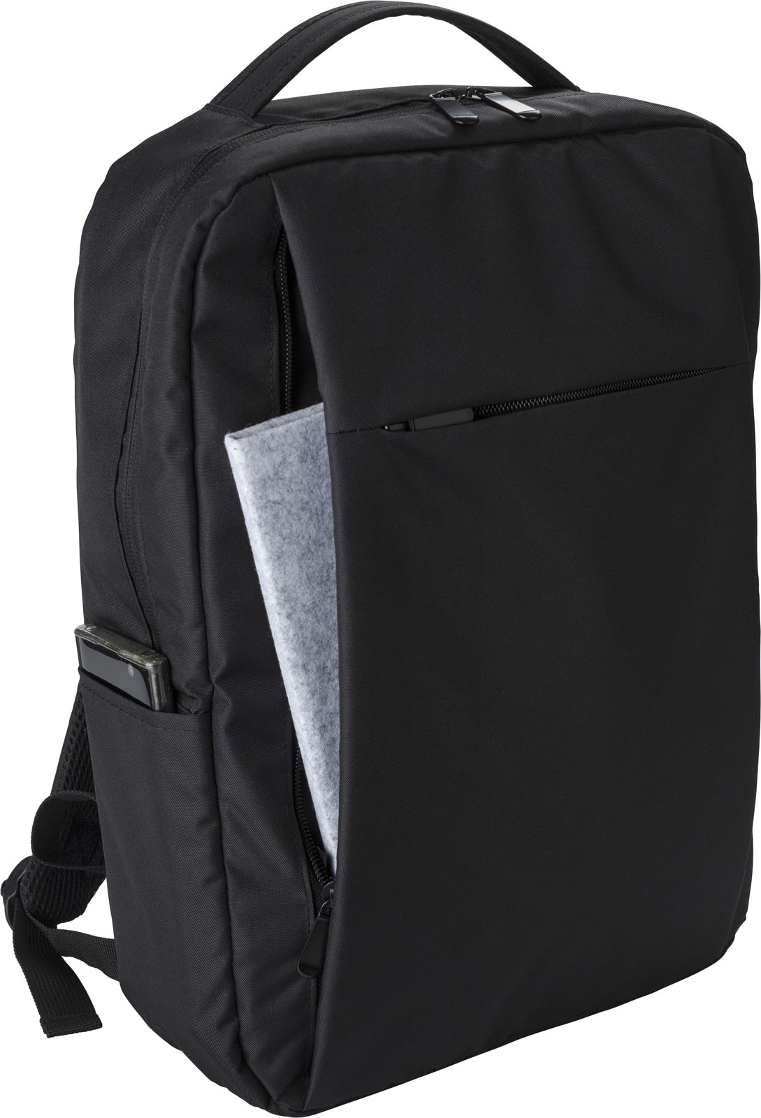 Kannettava reppu Jesse on valmistettu kestävästä RPET-materiaalista, joka on sekä ympäristöystävällinen että kestävä. Tämä reppu tarjoaa turvallisen paikan kannettavalle tietokoneellesi tarranauhalla suljettavassa taskussa. Siinä on myös useita sisätaskuja, joihin voit järjestää tavarasi helposti. Kätevän vetoketjullisen etutaskun ansiosta usein tarvittavat tavarat ovat nopeasti saatavilla. Reppu on myös varustettu USB-A aukolla sivulla, joka mahdollistaa helpon pääsyn laitteiden lataamiseen liikkeellä ollessa. Kestävä materiaali ja monipuoliset ominaisuudet tekevät tästä repusta erinomaisen valinnan päivittäiseen käyttöön.