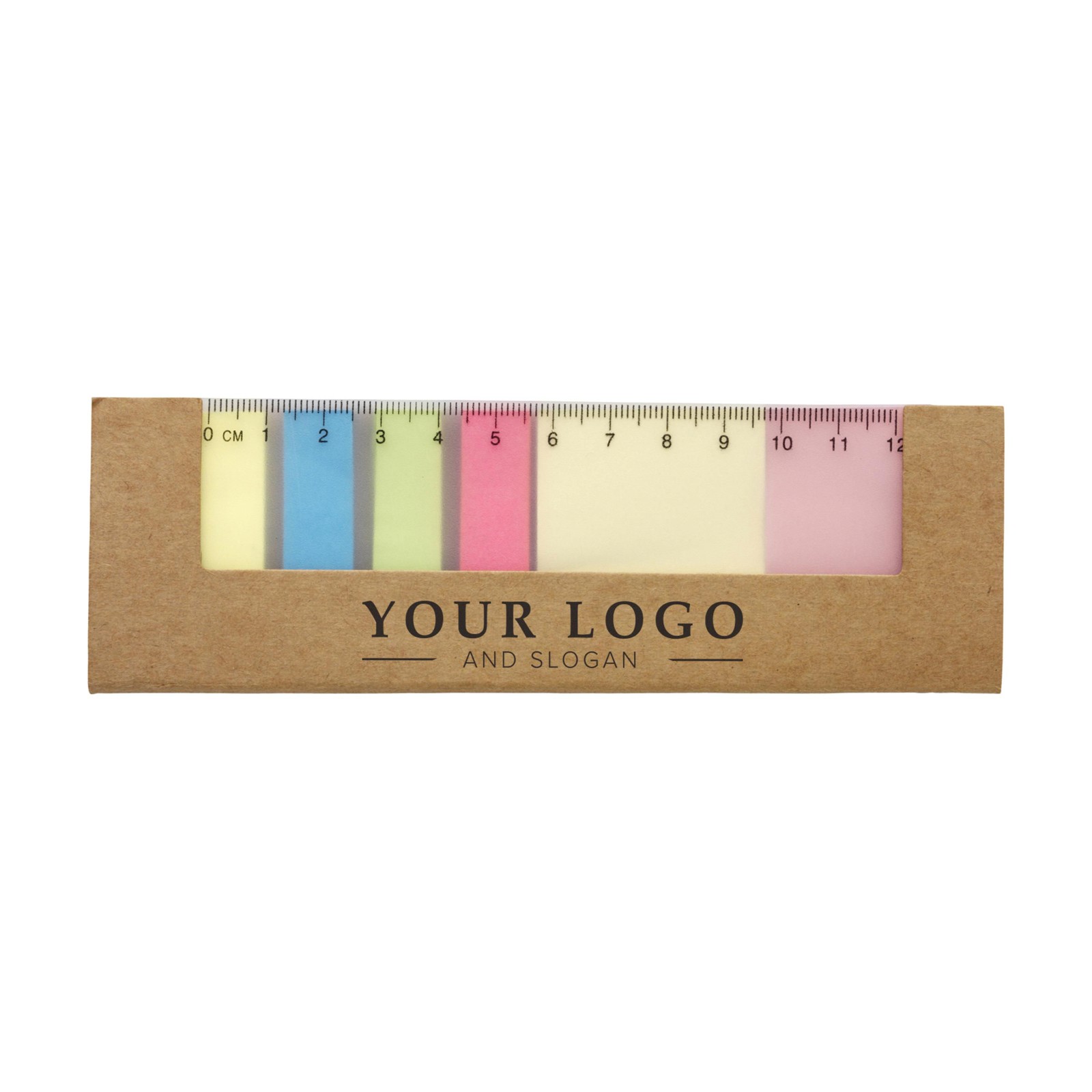 Pahvinen tarralappusetti, jonka paketissa 12cm viivoitin. Sisällä on 2 x 25 tarralappuja sekä pienempiä erivärisiä.