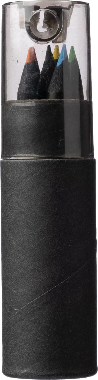 Värikynät (12 kpl) pahvisessa tuubissa. Tuubin korkissa teroitin.