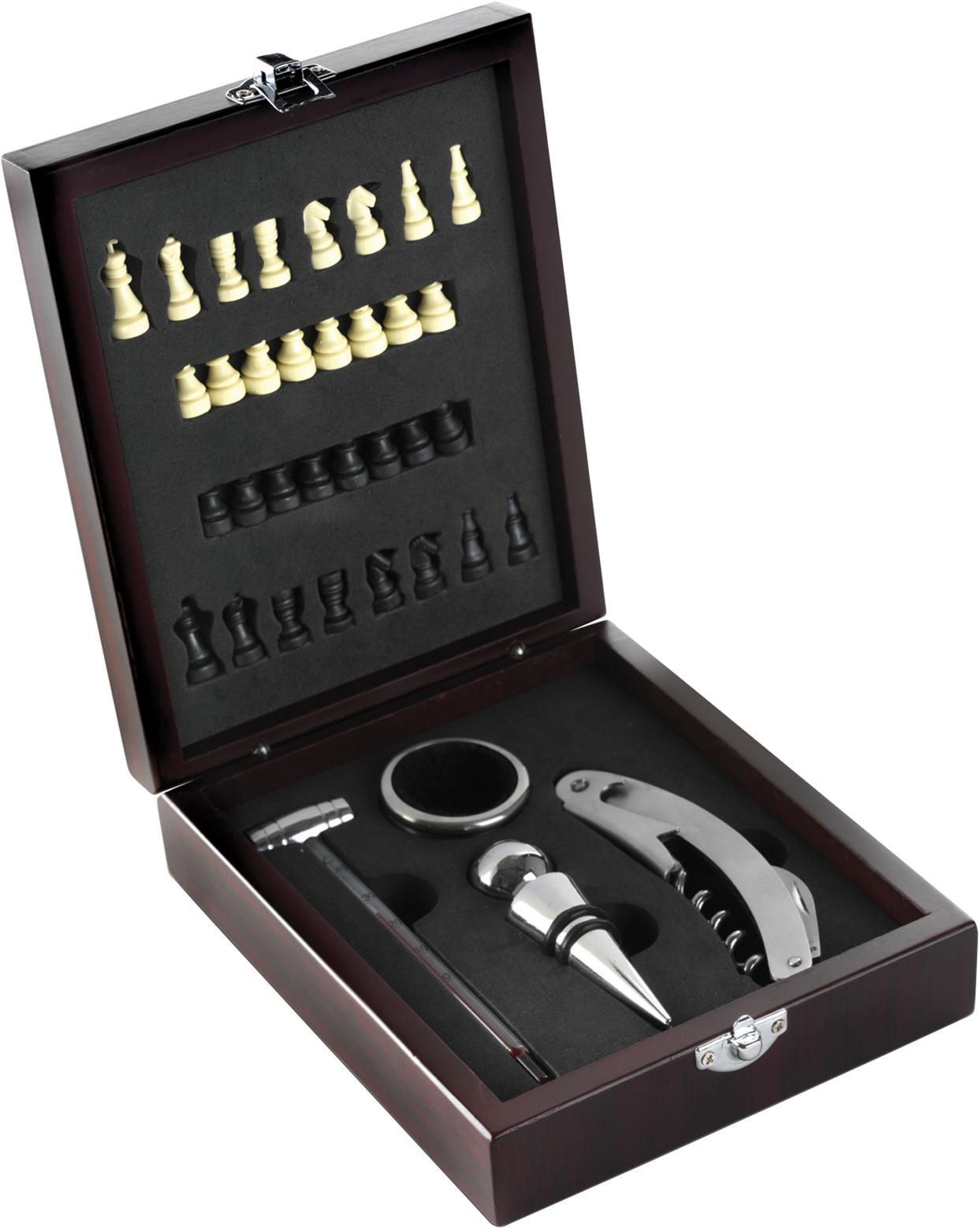 Puinen viinilahjasetti Renée on täydellinen lahja viinin ystäville, yhdistäen tyylikkään designin ja käytännöllisyyden. Tämä setti ei ainoastaan tarjoa korkealaatuisia viinityökaluja, vaan myös shakkipelin, joka tuo iloa mihin tahansa tilaisuuteen.